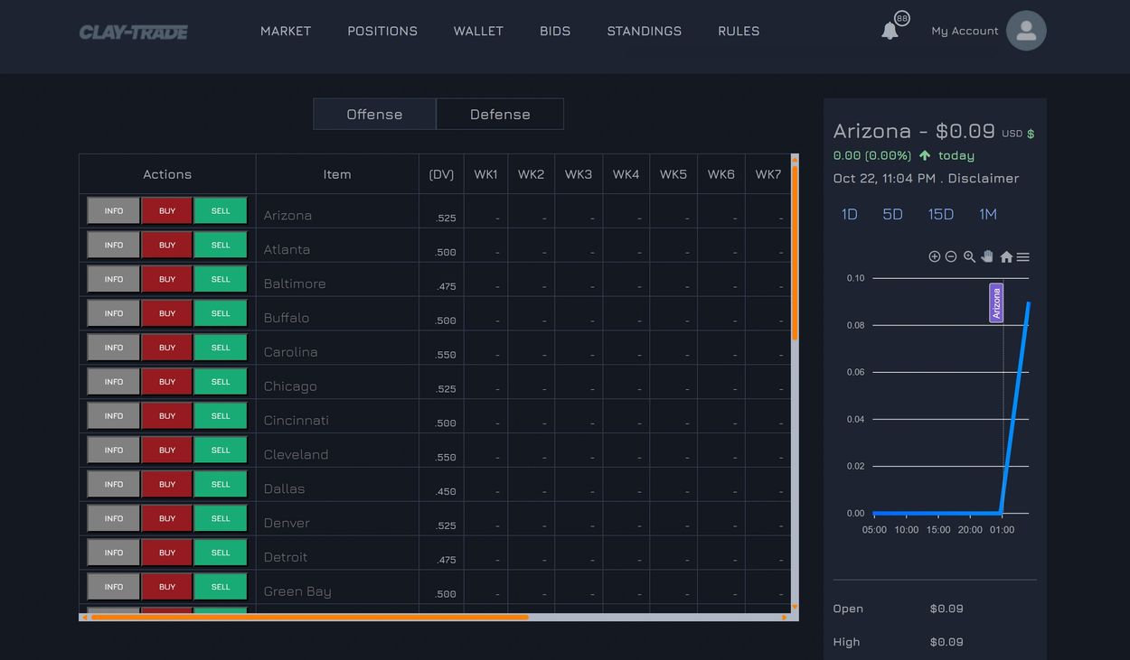 Market Page is where you buy and sell. You can also click on every team's statistics.